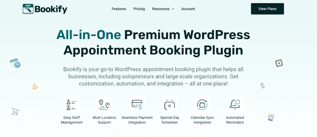 Bookify is a multifunctional WordPress appointment booking plugin. It is ideal for service businesses and small setups like clinics, salons, and consultants. It keeps up the scheduling for multi-staff in various locations and manages notifications and calendar synchronization.