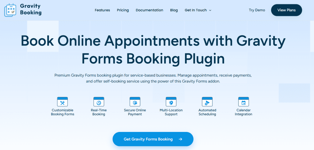 Gravity Booking is a WordPress booking plugin that converts Gravity Forms into a full-featured appointment booking system. It handles complicated tasks for businesses like a piece of cake. It smoothly handles booking, scheduling, syncing with calendars, and accepts payments.